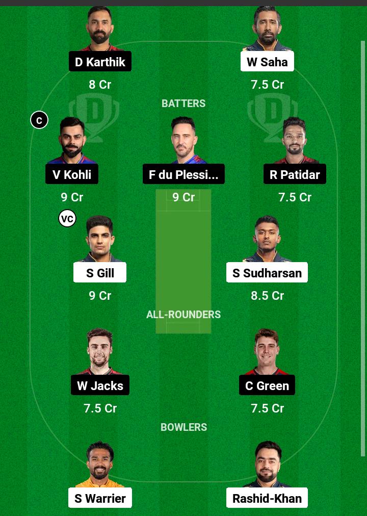 Suggested playing xi GT vs RCB Dream11 Team.