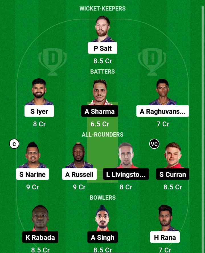 Suggested Playing xi KKR vs PBKS Dream11 Team.